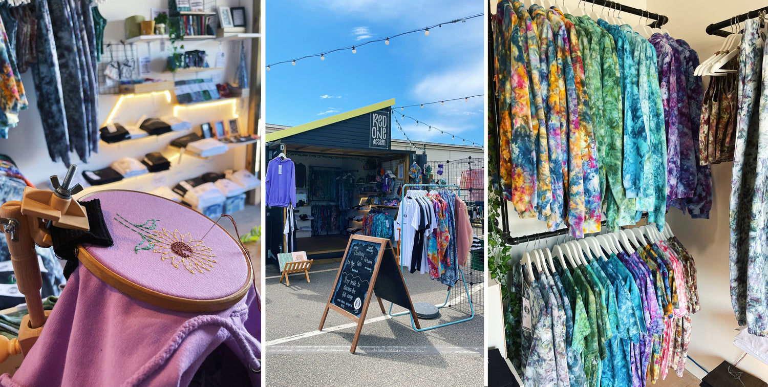 From graphic hand embroidered line art t-shirts, colourful ice dyed clothing and handmade accessories, everything in the shop is designed and made by hand by Kelly from her studio.