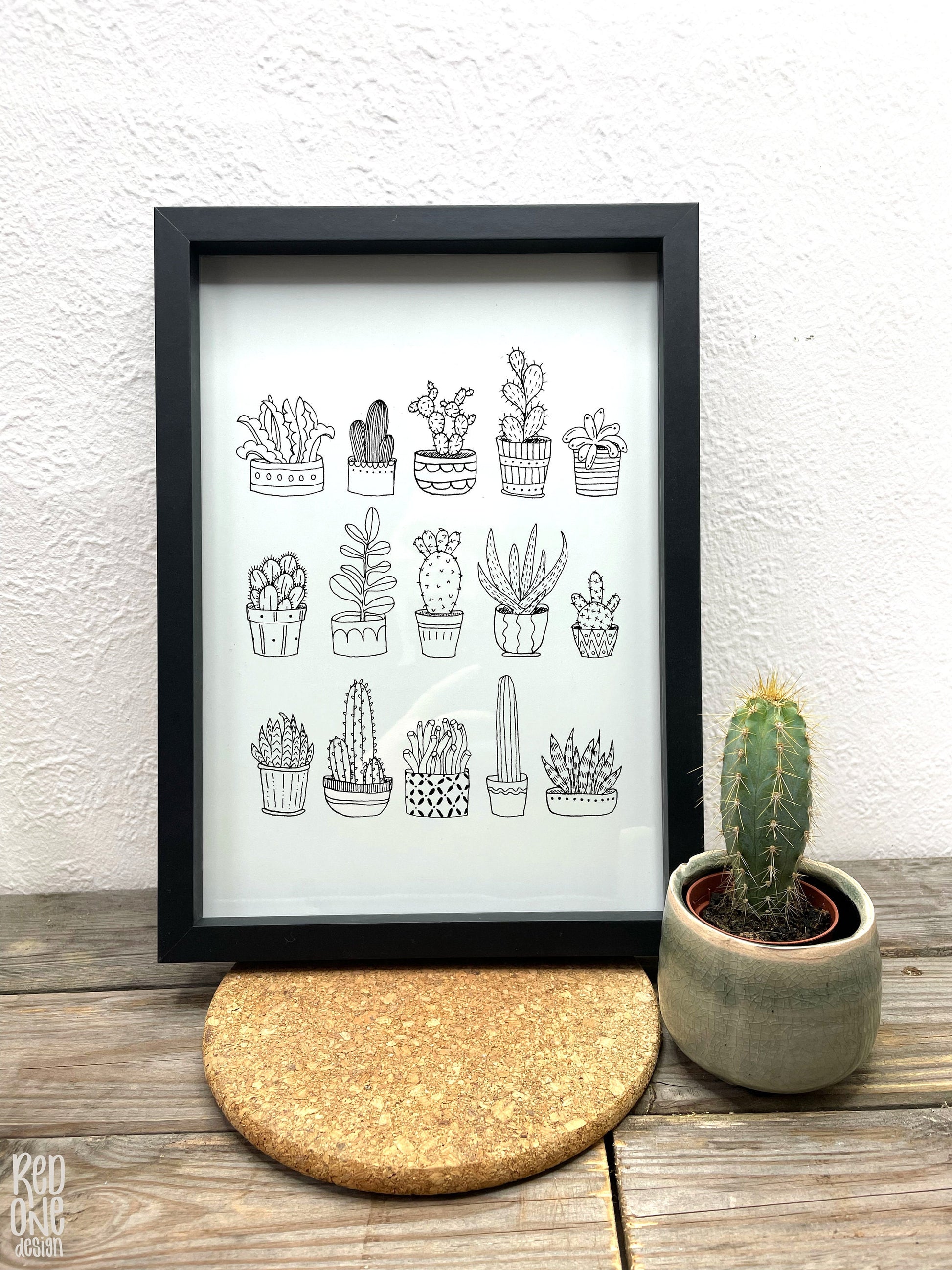 Houseplants Linear Art Print | Cacti Succulent Wallart Decor Home